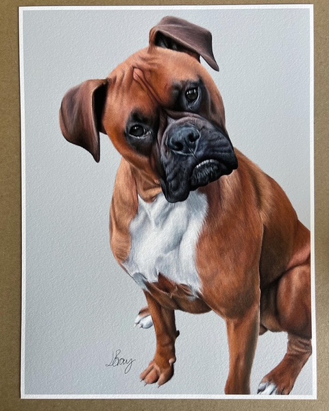 I can do digital drawings which I then print using Giclee printing and send directly to you, or I can do watercolour paintings. I can paint whatever animal you require, whether it is a domestic pet or a wild animal.